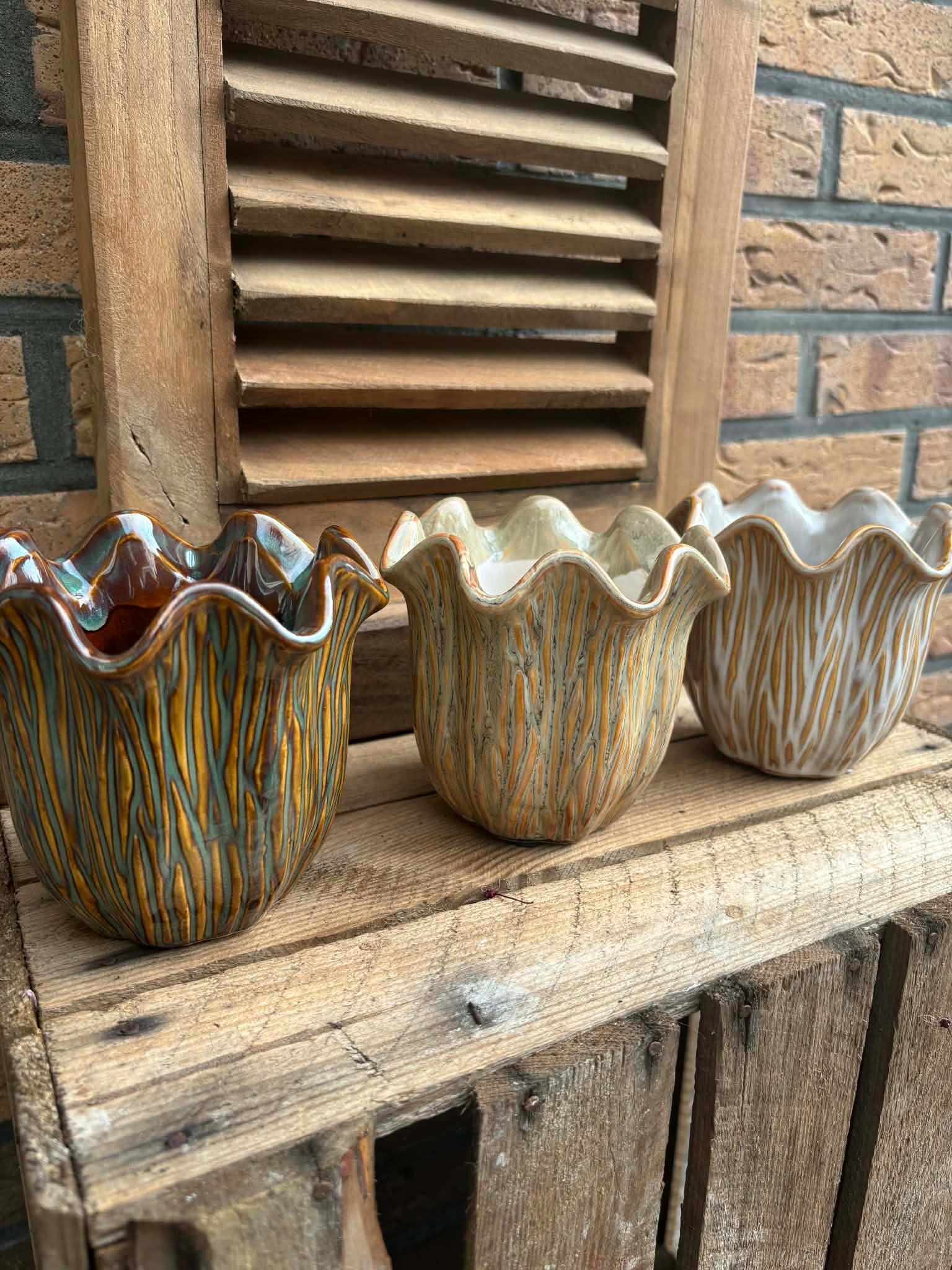 Deze keramieke potjes kun je gebruiken voor een plantje of als bloemenvaasje.